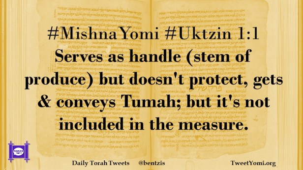 #MishnaYomi #Uktzin 1:1 Serves as handle (stem of produce) but doesn’t protect, gets & conveys Tumah; but it’s not included in the measure.