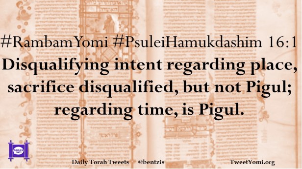 #RambamYomi #PsuleiHamukdashim 16:1 Disqualifying intent regarding place, sacrifice disqualified, but not Pigul; regarding time, is Pigul.