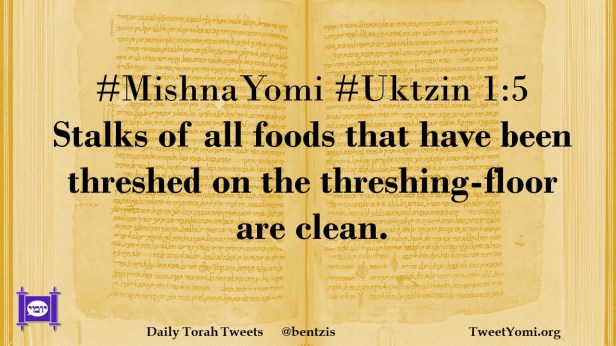 MishnaYomi, Uktzin #MishnaYomi #Uktzin 1:5 Date: December 13, 2021Author: ysspitz #MishnaYomi #Uktzin 1:5 Stalks of all foods that have been threshed on the threshing-floor are clean. Share this: Share on X (Opens in new window) X Share on Facebook (Opens in new window) Facebook Like Loading... Related