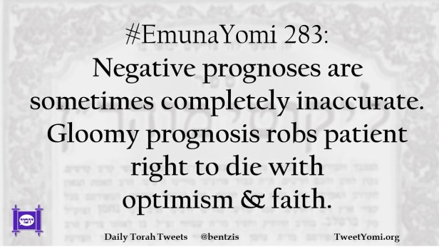 #EmunaYomi 283: Negative prognoses are sometimes completely inaccurate. Gloomy prognosis robs patient right to die with optimism & faith.