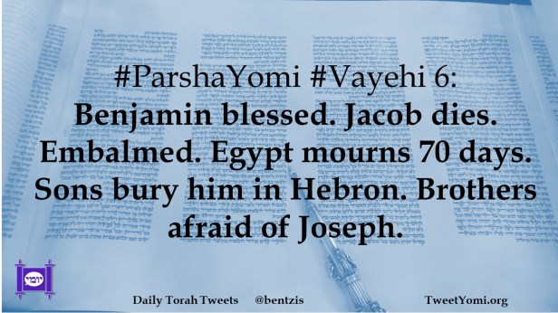 #ParshaYomi #Vayehi 6: Benjamin blessed. Jacob dies. Embalmed. Egypt mourns 70 days. Sons bury him in Hebron. Brothers afraid of Joseph.