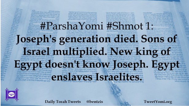#ParshaYomi #Shmot 1: Joseph’s generation died. Sons of Israel multiplied. New king of Egypt doesn’t know Joseph. Egypt enslaves Israelites.