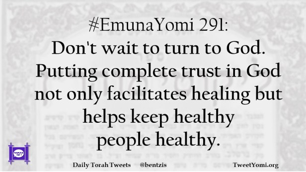 #EmunaYomi 291: Don’t wait to turn to God. Putting complete trust in God not only facilitates healing but helps keep healthy people healthy.