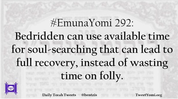 #EmunaYomi 292: Bedridden can use available time for soul-searching that can lead to full recovery, instead of wasting time on folly.