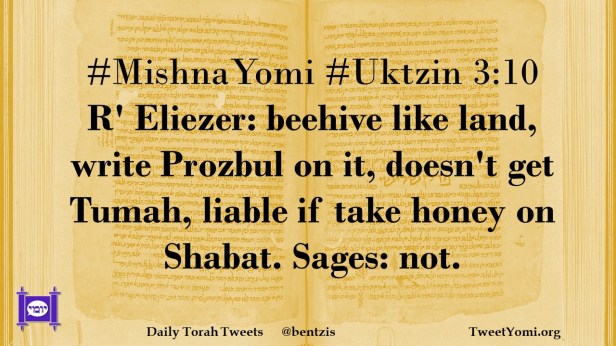 #MishnaYomi #Uktzin 3:10 R’ Eliezer: beehive like land, write Prozbul on it, doesn’t get Tumah, liable if take honey on Shabat. Sages: not.