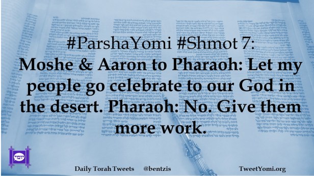 #ParshaYomi #Shmot 7: Moshe & Aaron to Pharaoh: Let my people go celebrate to our God in the desert. Pharaoh: No. Give them more work.