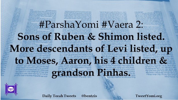#ParshaYomi #Vaera 2: Sons of Ruben & Shimon listed. More descendants of Levi listed, up to Moses, Aaron, his 4 children & grandson Pinhas.