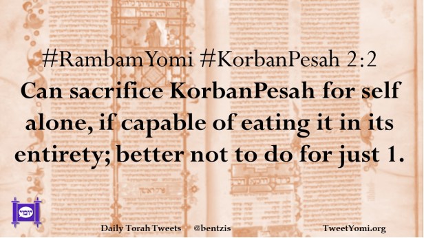 #RambamYomi #KorbanPesah 2:2 Can sacrifice KorbanPesah for self alone, if capable of eating it in its entirety; better not to do for just 1.