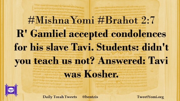 #MishnaYomi #Brahot 2:7 R’ Gamliel accepted condolences for his slave Tavi. Students: didn’t you teach us not? Answered: Tavi was Kosher.