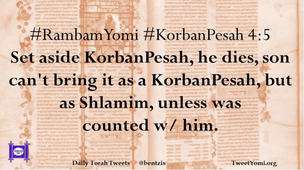 #RambamYomi #KorbanPesah 4:5 Set aside KorbanPesah, he dies, son can’t bring it as a KorbanPesah, but as Shlamim, unless was counted w/ him.