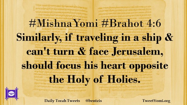 #MishnaYomi #Brahot 4:6 Similarly, if traveling in a ship & can’t turn & face Jerusalem, should focus his heart opposite the Holy of Holies.