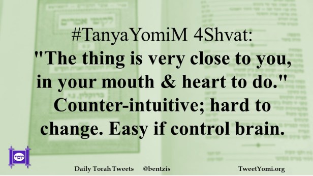 #TanyaYomiM 4Shvat: “The thing is very close to you, in your mouth & heart to do.” Counter-intuitive; hard to change. Easy if control brain.