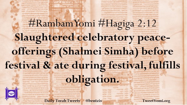 #RambamYomi #Hagiga 2:12 Slaughtered celebratory peace-offerings (Shalmei Simha) before festival & ate during festival, fulfills obligation.