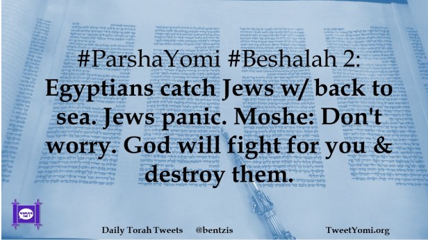 #ParshaYomi #Beshalah 2: Egyptians catch Jews w/ back to sea. Jews panic. Moshe: Don’t worry. God will fight for you & destroy them.