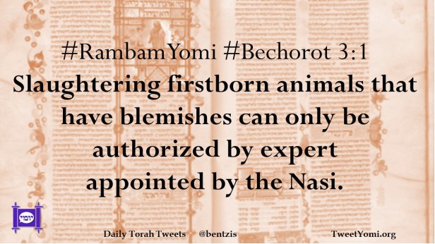 #RambamYomi #Bechorot 3:1 Slaughtering firstborn animals that have blemishes can only be authorized by expert appointed by the Nasi.