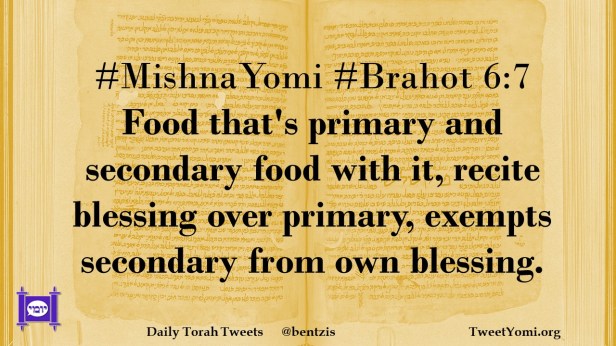 #MishnaYomi #Brahot 6:7 Food that’s primary and secondary food with it, recite blessing over primary, exempts secondary from own blessing.