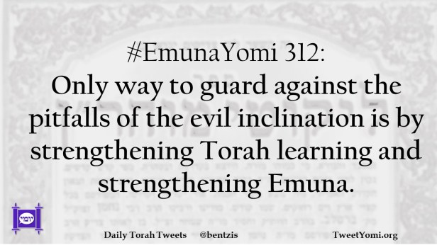 #EmunaYomi 312: Only way to guard against the pitfalls of the evil inclination is by strengthening Torah learning and strengthening Emuna.