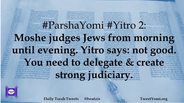 #ParshaYomi #Yitro 2: Moshe judges Jews from morning until evening. Yitro says: not good. You need to delegate & create strong judiciary.