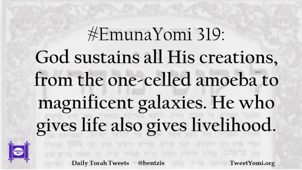 #EmunaYomi 319: God sustains all His creations, from the one-celled amoeba to magnificent galaxies. He who gives life also gives livelihood.