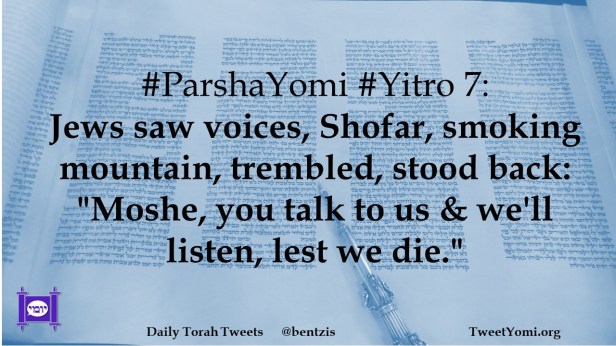 #ParshaYomi #Yitro 7: Jews saw voices, Shofar, smoking mountain, trembled, stood back: “Moshe, you talk to us & we’ll listen, lest we die.”