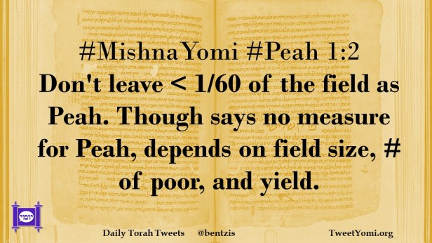 #MishnaYomi #Peah 1:2 Don’t leave < 1/60 of the field as Peah. Though says no measure for Peah, depends on field size, # of poor, and yield.