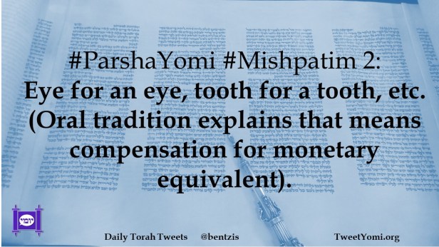 #ParshaYomi #Mishpatim 2: Eye for an eye, tooth for a tooth, etc. (Oral tradition explains that means compensation for monetary equivalent).