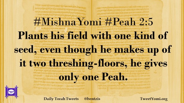 #MishnaYomi #Peah 2:5 Plants his field with one kind of seed, even though he makes up of it two threshing-floors, he gives only one Peah.