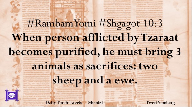 #RambamYomi #Shgagot 10:3 When person afflicted by Tzaraat becomes purified, he must bring 3 animals as sacrifices: two sheep and a ewe.
