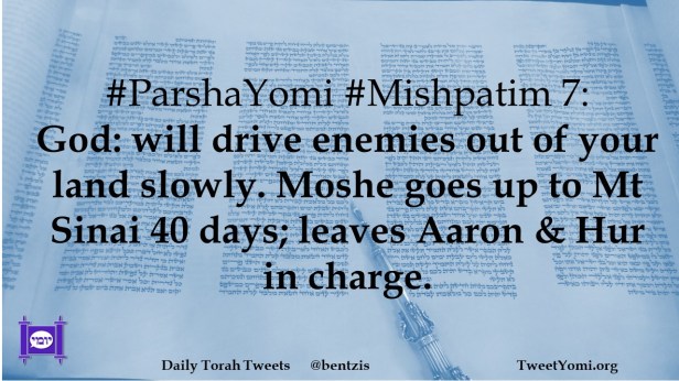 #ParshaYomi #Mishpatim 7: God: will drive enemies out of your land slowly. Moshe goes up to Mt Sinai 40 days; leaves Aaron & Hur in charge.