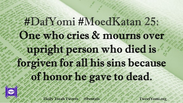 DafYomi, MoedKatan #DafYomi #MoedKatan 25 Date: February 6, 2022Author: ysspitz #DafYomi #MoedKatan 25: One who cries & mourns over upright person who died they forgive him for all his sins ‘cuz of honor he gave to dead. Share this: Share on X (Opens in new window) X Share on Facebook (Opens in new window) Facebook Like Loading... Related