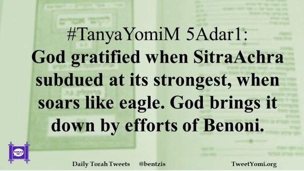 #TanyaYomiM 5Adar1: God gratified when SitraAchra subdued at its strongest, when soars like eagle. God brings it down by efforts of Benoni.