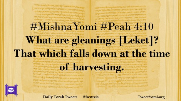 MishnaYomi, Peah #MishnaYomi #Peah 4:10 Date: February 8, 2022Author: ysspitz #MishnaYomi #Peah 4:10 What are gleanings [Leket]? That which falls down at the time of harvesting. Share this: Share on X (Opens in new window) X Share on Facebook (Opens in new window) Facebook Like Loading... Related