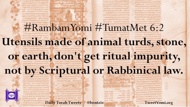 #RambamYomi #TumatMet 6:2 Utensils made of animal turds, stone, or earth, don’t get ritual impurity, not by Scriptural or Rabbinical law.