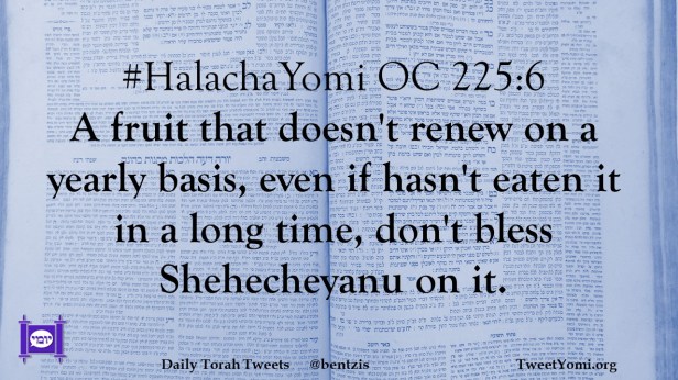 #HalachaYomi OC 225:6 A fruit that doesn’t renew on a yearly basis, even if hasn’t eaten it in a long time, don’t bless Shehecheyanu on it.