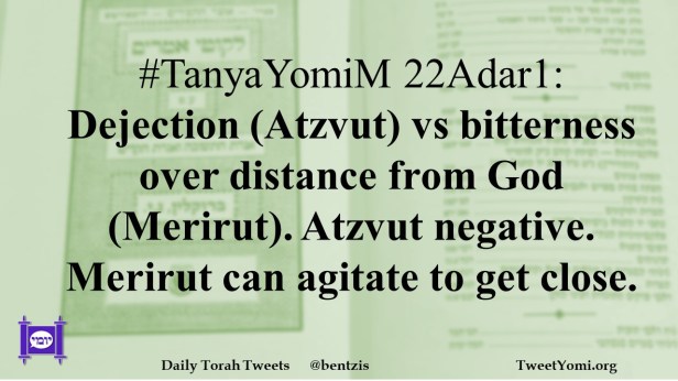 #TanyaYomiM 22Adar1: Dejection (Atzvut) vs bitterness over distance from God (Merirut). Atzvut negative. Merirut can agitate to get close.