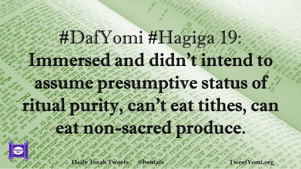 DafYomi, Hagiga #DafYomi #Hagiga 19 Date: March 1, 2022Author: ysspitz #DafYomi #Hagiga 19: Immersed and didn’t intend to assume presumptive status of ritual purity, can’t eat tithes, can eat non-sacred produce. Share this: Share on X (Opens in new window) X Share on Facebook (Opens in new window) Facebook Like Loading... Related