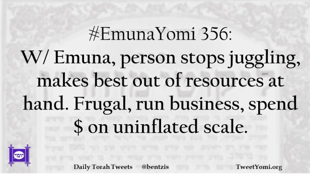 #EmunaYomi 356: W/ Emuna, person stops juggling, makes best out of resources at hand. Frugal, run business, spend $ on uninflated scale.