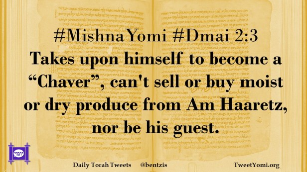#MishnaYomi #Dmai 2:3 Takes upon himself to become a “Chaver”, can’t sell or buy moist or dry produce from Am Haaretz, nor be his guest.
