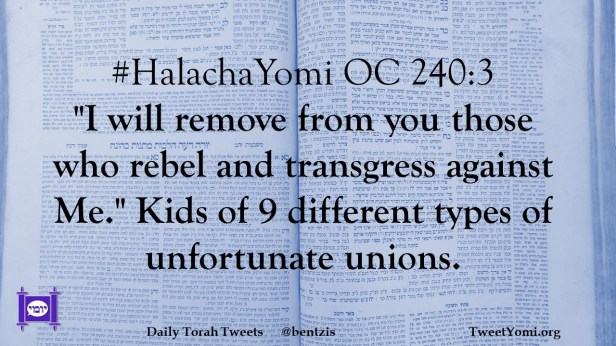 #HalachaYomi OC 240:3 “I will remove from you those who rebel and transgress against Me.” Kids of 9 different types of unfortunate unions.