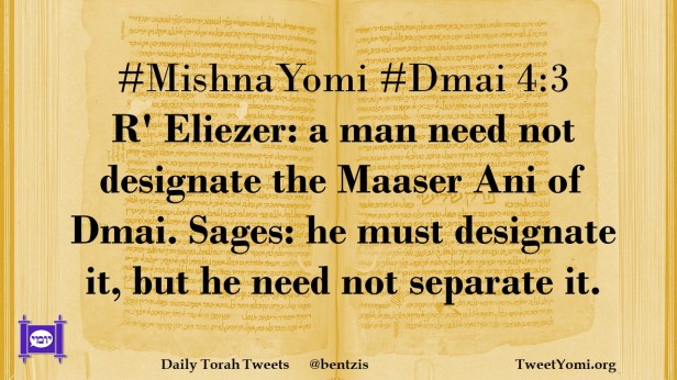 #MishnaYomi #Dmai 4:3 R’ Eliezer: a man need not designate the Maaser Ani of Dmai. Sages: he must designate it, but he need not separate it.