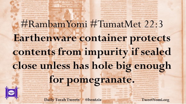 #RambamYomi #TumatMet 22:3 Earthenware container protects contents from impurity if sealed close unless has hole big enough for pomegranate.
