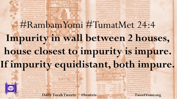 #RambamYomi #TumatMet 24:4 Impurity in wall between 2 houses, house closest to impurity is impure. If impurity equidistant, both impure.