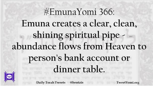 #EmunaYomi 366: Emuna creates a clear, clean, shining spiritual pipe – abundance flows from Heaven to person’s bank account or dinner table.