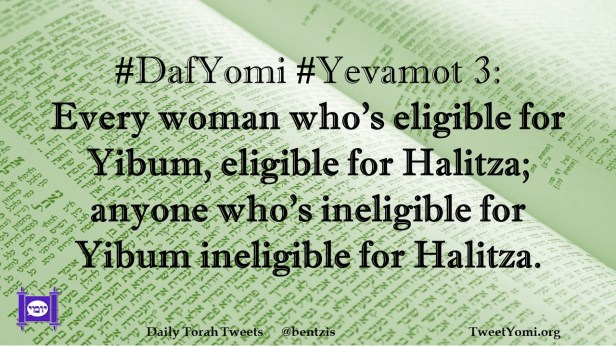 DafYomi, Yevamot #DafYomi #Yevamot 3 Date: March 11, 2022Author: ysspitz #DafYomi #Yevamot 3: Every woman who’s eligible for Yibum, eligible for Halitza; anyone who’s ineligible for Yibum ineligible for Halitza. Share this: Share on X (Opens in new window) X Share on Facebook (Opens in new window) Facebook Like Loading... Related