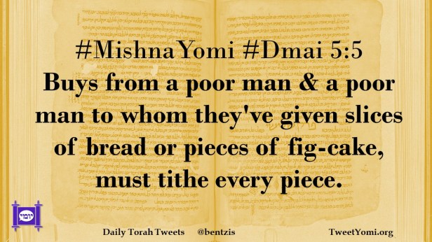 #MishnaYomi #Dmai 5:5 Buys from a poor man & a poor man to whom they’ve given slices of bread or pieces of fig-cake, must tithe every piece.