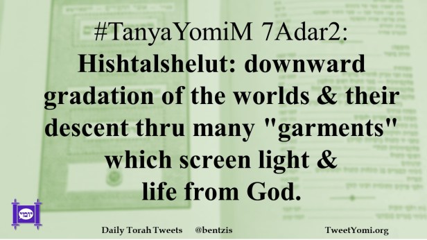#TanyaYomiM 7Adar2: Hishtalshelut: downward gradation of the worlds & their descent thru many “garments” which screen light & life from God.