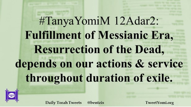 #TanyaYomiM 12Adar2: Fulfillment of Messianic Era, Resurrection of the Dead, depends on our actions & service throughout duration of exile.
