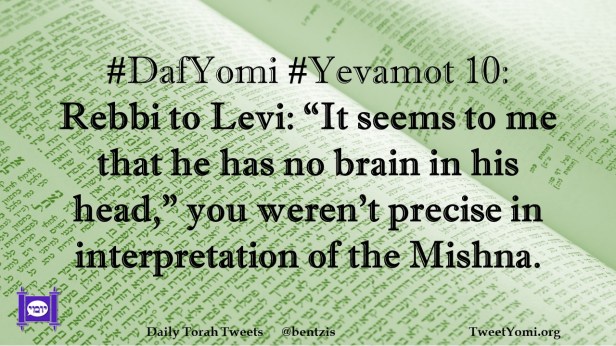 DafYomi, Yevamot #DafYomi #Yevamot 10 Date: March 21, 2022Author: ysspitz #DafYomi #Yevamot 10: Rebbi to Levi: “It seems to me that he has no brain in his head,” you weren’t precise in interpretation of the Mishna. Share this: Share on X (Opens in new window) X Share on Facebook (Opens in new window) Facebook Like Loading... Related