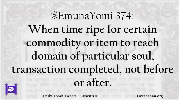 #EmunaYomi 374: When time ripe for certain commodity or item to reach domain of particular soul, transaction completed, not before or after.