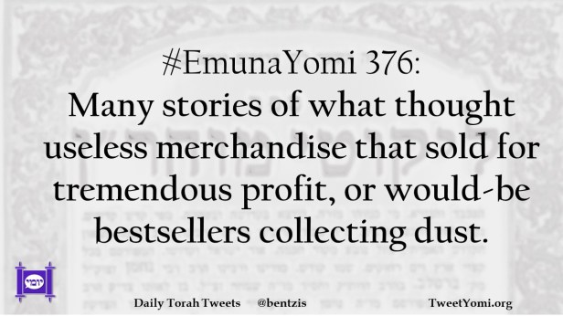 #EmunaYomi 376: Many stories of what thought useless merchandise that sold for tremendous profit, or would-be bestsellers collecting dust.